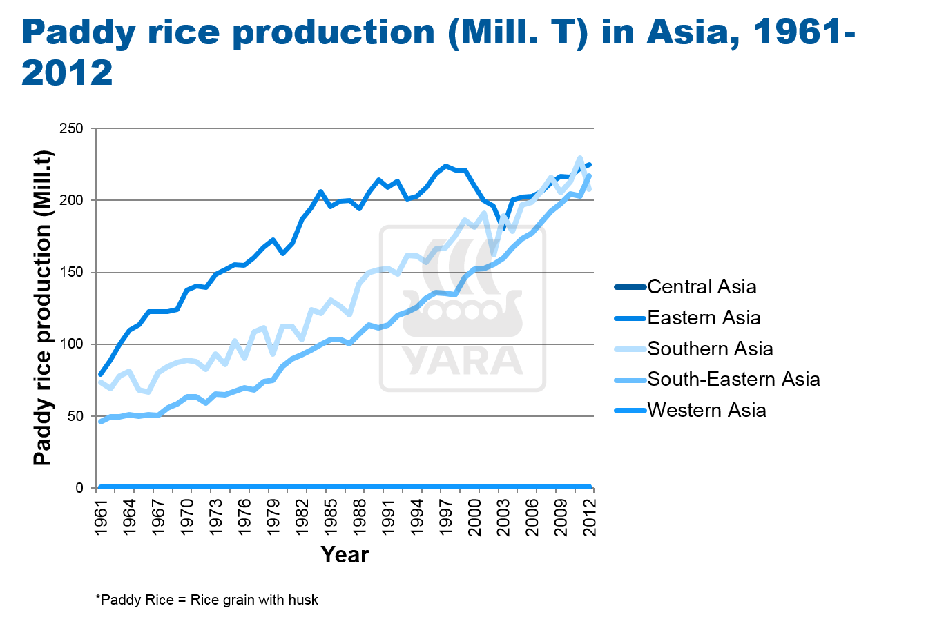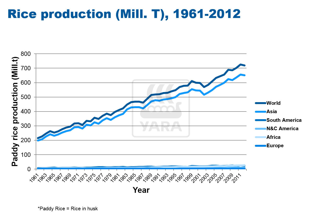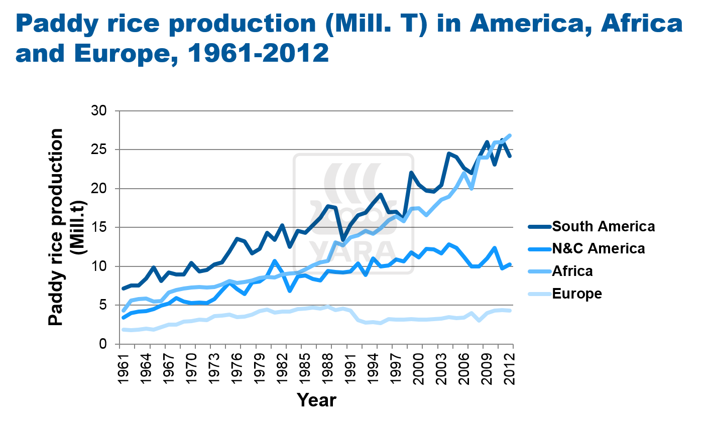 지난 20년 동안 남아메리카 (주요국가: 브라질 = 1100만톤) 아프리카 (주요국가: 이집트 = 590만톤, 마다가스카르 = 400만톤, 나이지리아 480만톤) 두 대륙에서 꾸준한 생산량의 증가가 있었습니다.
